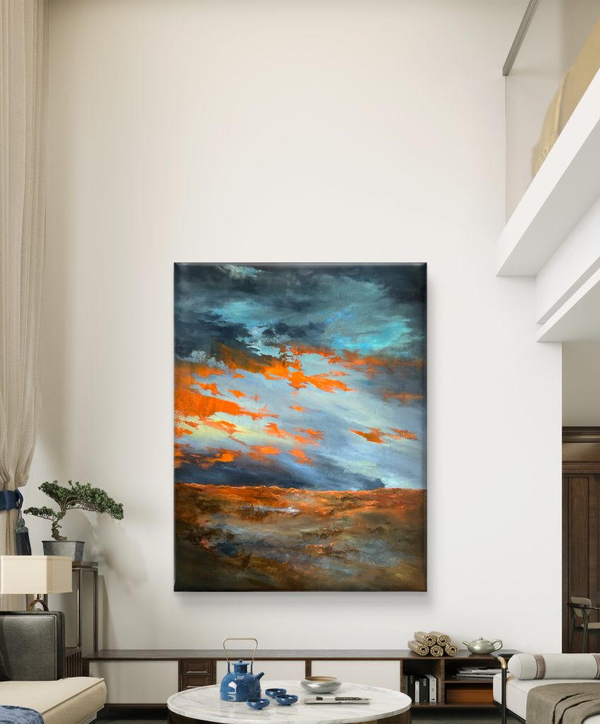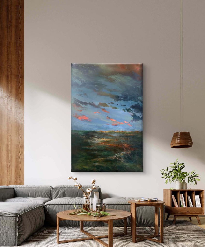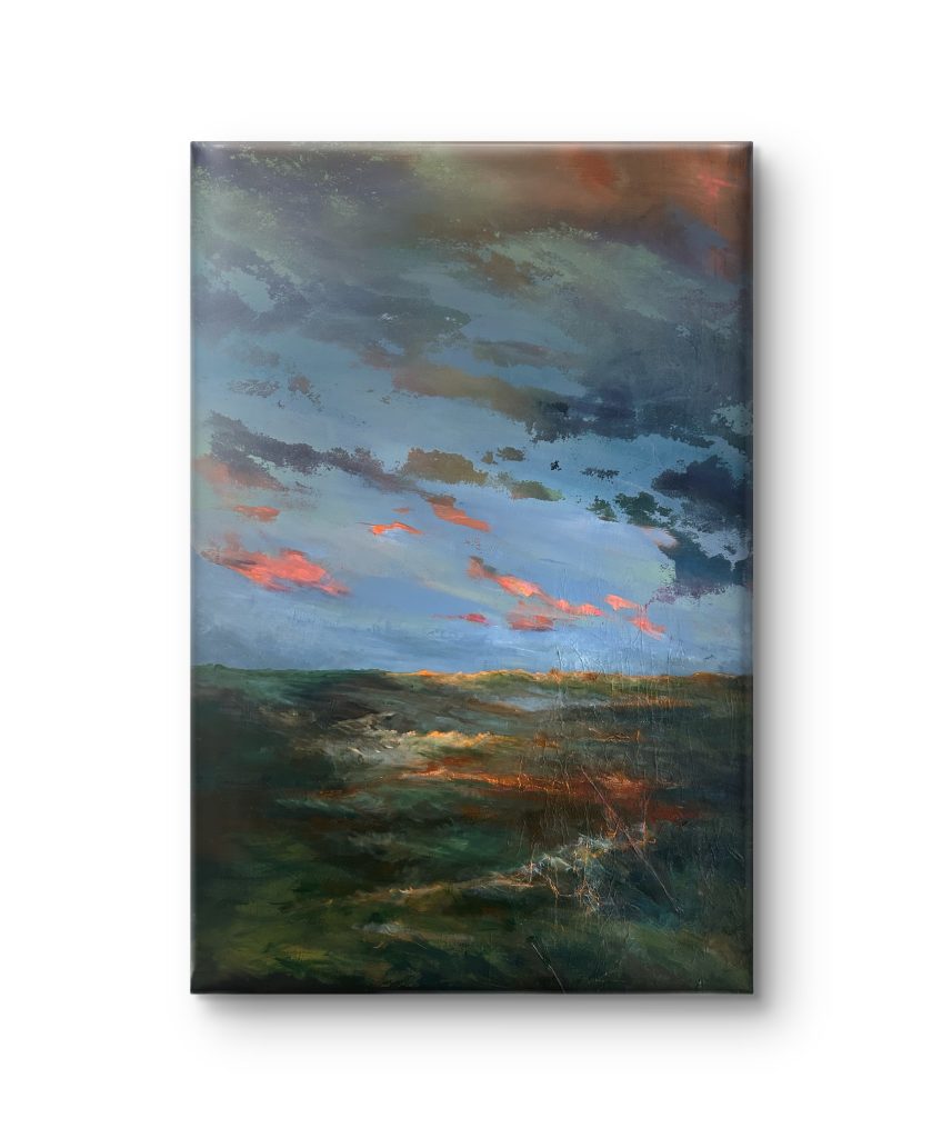 Jag älskar variationen av uttryck och ”vandrar” därför oftast mellan olika tekniker och material som speglar min syn på världen. Senaste tiden har min konst blivit mer abstrakt med inslag av expressionism. Landskapet är min ständiga inspiration där skapandet är kopplat till mitt inre rum. Jag är inte intresserad av en specifik plats, utan styrs av mina känslor när landskapet växer fram. Jag arbetar intuitivt där horisont, ljus och djup uppstår via min inre tystnad som leder mig fram till mina motiv. Alla lager av färg är en del av tid och känsla. Landskapen har inga tydliga gränser utan lämnar utrymme för betraktarens personliga upplevelse. Grunden i skapandet handlar om att konstverket kan vara kraftfullt och laddat och med en djupare betydelse, men verket kan även existera och vara vackert och sprida glädje, färg och framför till betraktaren och rummet.