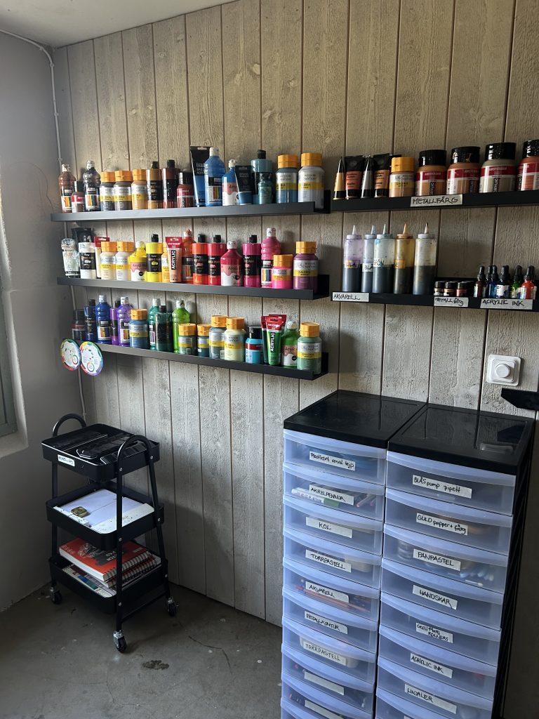 Passar dig med ett flexibelt liv och som inte kan binda upp dig till exakta tider eller veckor beroende på livssituation eller arbete. Du betalar 280 kr/gång och får därmed tillgång till allt material på ateljén inklusive canvasdukar, akvarellpapper, färger, mallar, gelli plate m.m. Du får uppgifter och genomgångar av mig utifrån vad du vill arbeta med och vill utveckla. Jag handleder dig framåt i ditt skapande.